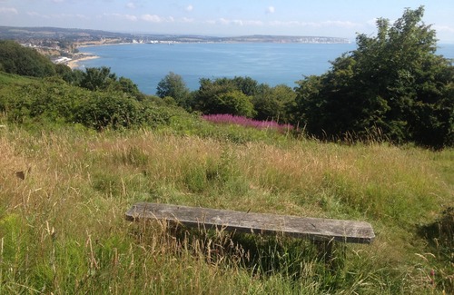 The Hikers' Hut at Highcliff, is a magical timber hut with stunning sea views over the east coast of the Isle of Wight. Situated on the cliff edge 100m above the shoreline between Shanklin and Ventnor, the famous Isle of Wight Coastal Path is at the front gate. The Hut borders a National Trust field and is a perfect cabin for hikers, bird watchers, beach goers and nature lovers. With its own separate entrance and garden, it sits in the apple orchard of Highcliff Estate, Luccombe.