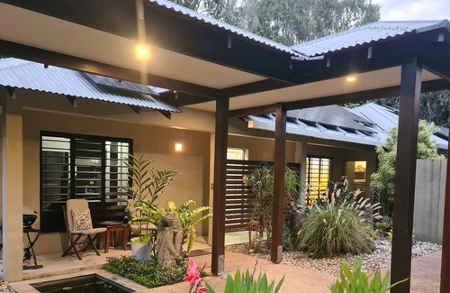 Your hosts, Peter & Nikki enjoy a naturalist lifestyle in the privacy of our home. We now invite guests to enjoy a unique holiday, and to experience our beautiful style pavilion home that is unique to the tropics, complete with a heated swimming pool, a pond teaming with fish, surrounded by lush tropical gardens and all in a spectacular private setting.