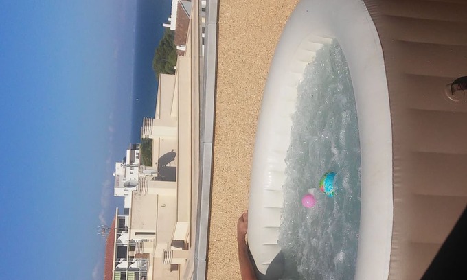 Apartment penthouse apartment in Miami Beach (Tarragona) very quiet area 30 meters from the beach with 2 bedrooms one double and one single, plus double sofa bed, air conditioning and heat pump throughout the apartment, sink, washing machine, kitchen independent, terrace of 30 meters with sea views, barbecue, jacuzzi and chill out on terrace, community pool and parking space, new construction supermarkets at 50 meters beautiful coves and long beach price to consult you can visit send photos by whats dates