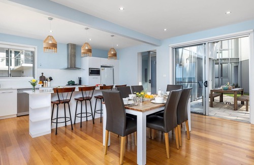 Offering an architect-designed beach house, where luxury meets coastal charm. The property is an absolute waterfront gem, combining the timeless appeal of an original beach cottage with a modern, stylish interior. Enjoy breathtaking water views from the open-plan kitchen, designed to inspire culinary creativity, while spacious living areas offer the perfect setting for family gatherings or a quiet retreat. With four beautifully appointed bedrooms, 3 bathrooms, and two separate living spaces, this property caters effortlessly to both families and large groups looking for a luxurious holiday experience.
