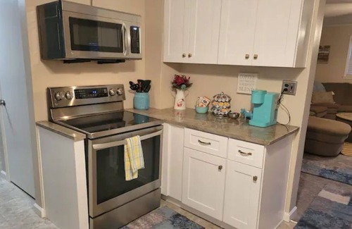 There is plenty of off-street parking (small gatherings only). Outdoor gas grill, patio set & metal fire pit in the huge yard. A basketball hoop provided and other sports equipment is available & provided upon request. I have Fast WIFI & tons of channels on 3 TVs, room for 8 at dining table (leaf in closet for your use) & extra room for our pack & play, or your crib. New high chair also provided as well as toys, games & books.