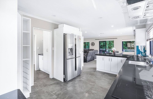 Forest Haven is a spacious three-bedroom home with upstairs and downstairs living areas and a deck, conveniently located near Chartwell and Rototuna shops.