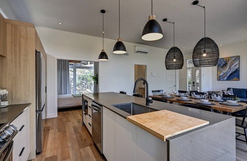 - Well-appointed with smart TV, full kitchen, and modern decor for ultimate comfort.