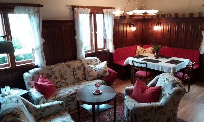 You don't always have to travel far to find some peace and relaxation in nature. Our rustic and nostalgically furnished hunting lodge offers exactly these conditions. At the edge of the forest and with a great view of the foothills of the Ore Mountains near the 7-hill town of Kirchberg in Saxony.
