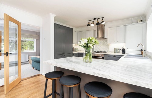 Living areas: Open-plan kitchen–diner with seating for six and French doors to the garden. Snug with high-quality TV (Prime Video & Apple TV). Separate front lounge with morning sun.
