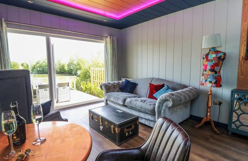 In One, a single-storey lodge consists of a kitchen with amenities including a microwave, kettle, oven, hob, fridge freezer, dining seating for two, and a sitting area with LED ceiling lights and patio doors leading onto lakeside views. The bedroom consists of a king-size room, serviced by a bathroom. Outside, there is a decking with furniture overlooking the lake, a private enclosed garden with gravel, drinks bar, barbecue, hot tub, daybed, and outdoor shower. No pets allowed. Sorry, no smoking. Bed linen, towels, fuel and power are all included. You'll find the closest shop in 1.5 miles, and a pub in 1.1 miles. In One is a wonderful stay, whatever the weather. Note: No children allowed; babes in arms only. Note: There are a few steps up to the property, please take care. Note: All lodges are either at the water's edge or have decking over the water. Note: Each lodge has a designated parking space, but if further space is needed, it can be accommodated. Note: There is a 100 meter walk from your car to the lodge (a trolly is provided for luggage). Note: The owner will provide a starter pack of logs for the hot tub heat and charcoal for your first BBQ, additional logs and charcoal can be purchased nearby. Note: Owners will provide "Wild" shampoo, conditioner, shower gel and soap for use throughout your stay