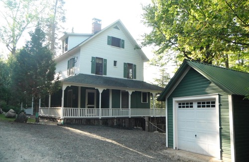 Our waterfront traditional Adirondack farmhouse style home offers early 1900s charm with 21st century amenities such as central heat and A/C. We have beautiful lake views, a wrap around covered porch overlooking the lake, an out door stone fire pit, and private dock. With 5 bedrooms and 3 levels of space, we are prefect for families and groups. Located on a private single lane road nearly adjacent to the beach. Close to Whiteface Mountain, Mt. Pisgah, the villages of Saranac Lake & Lake Placid, restaurants and activities.