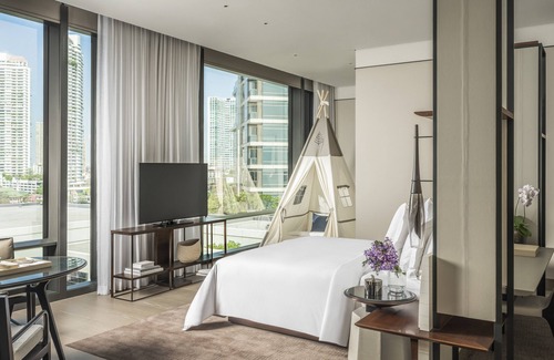 Four Seasons Hotel Bangkok at Chao Phraya River offers 299 air-conditioned accommodations with iPod docking stations and minibars. Accommodations offer separate sitting areas. A pillow menu is available. 55-inch LCD televisions come with digital channels. Bathrooms include bathtubs or showers, bathrobes, slippers, and bidets.
