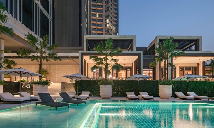 Luxury hotel with 3 outdoor swimming pools connected to the convention center in Bangkok