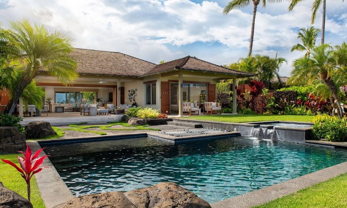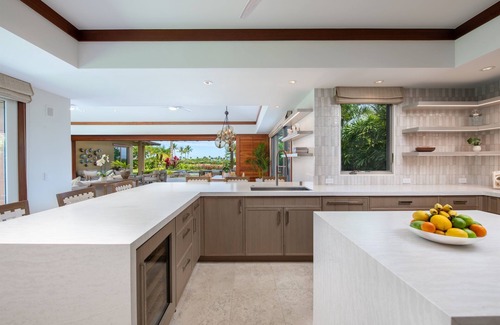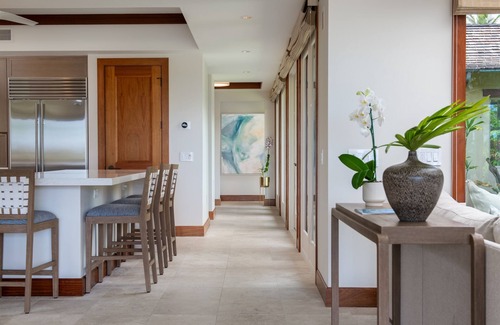 With over 3,000 square feet of indoor living space there is plenty of space to gather in a group in addition to private spaces to retreat alone. The spacious home includes a great room that seamlessly opens onto the expansive lanai blurring the lines between indoor and outdoor living. There are large dining tables inside and outside for family meals and a gorgeous private pool and hot tub. Enjoy cooking in the chef's kitchen or fire up the gas grill on the lanai.