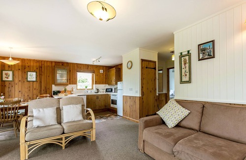 One storey Lodge with covered veranda with outdoor furniture and lovely views. Two bedrooms one double with en suite shower room and one twin bedroom, main bathroom with bath and shower over. There is a pull down child's bunk bed available at the head of the twin bedroom. Living room with dining, sitting and kitchen area. Fully fitted with free Wifi, flat screen TV and Dvd. Set in 3 acre gardens with putting green, games room, children's swings and sandpit. Set on a quiet country lane but only twenty minutes walk from Minehead with it's shops and restaurants and beach beyond. Parking next to Lodge