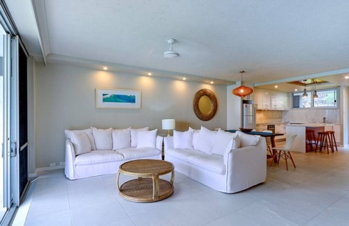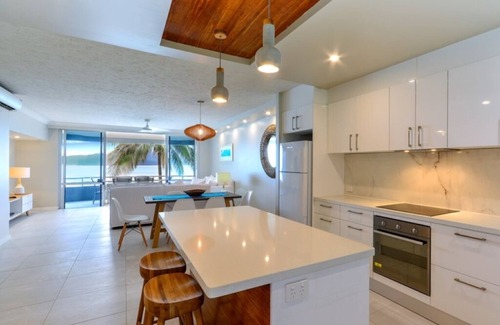This light-filled, two bedroom apartment offers spectacular views over Catseye Beach and a quintessential tropical getaway for couples, families and friends.