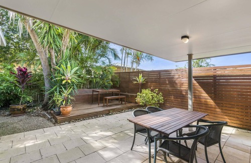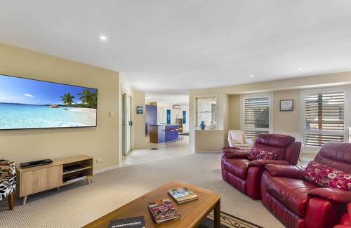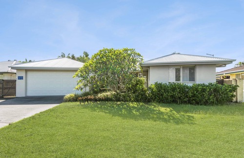 Frangipani Hideaway is a lovely family home, located in in the village of Lennox Head, which sleeps seven people. With four generous sized bedrooms, two bathrooms and a double lock up garage, this property is very spacious and is ideal for an extended family. The property also has a well-maintained pool, as well as lovely artwork and furnishings throughout.