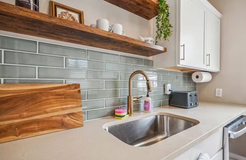 ▪ The coffee station is equipped with a coffee maker, an assortment of tea, creamer, sugar, and coffee, ensuring everything you need to start your day is right at your fingertips.