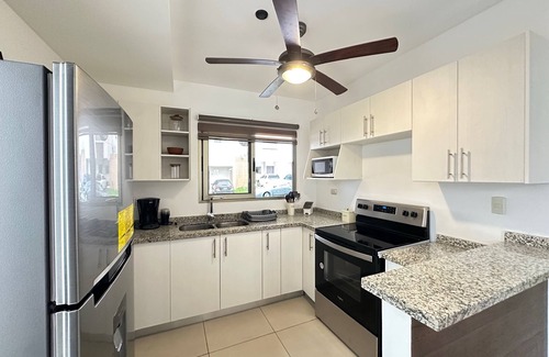 Welcome to our charming house! This cozy home features 3 bedrooms, 2 bathrooms, a garden, and convenient amenities like a washer and dryer. With 2 parking spots available, you can explore the area with ease. Enjoy the community's inviting pool and take advantage of our affordable airport pick-up service. Your perfect getaway awaits!