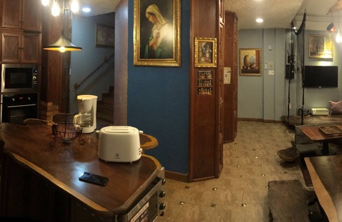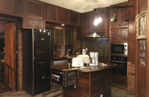 First floor is a fully stocked kitchen for all cooking needs, it comes with convection oven, bread oven, microwave oven, modern stoves, full size dishwasher with plenty of dish soaps, coffeemaker, bread toaster, many pots , pans, bowls , plates, spoon, forks, chopsticks and all the basic utensils. A full restroom, a balcony looks out over the pool, and another small living area with an internet enabled smart tv and Bluetooth speaker, where you get entertainment from YouTube, Netflix...