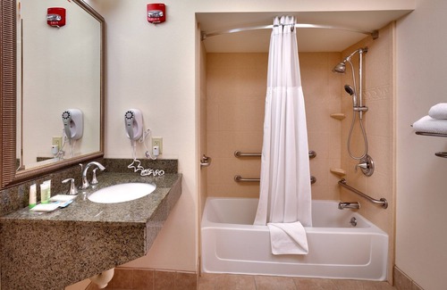 Get ready in our 1 BATHROOM. There is an accessible bathtub. We provide you with a hairdryer, towels, and complimentary toiletries. There are self-serve washing and drying machines available on-site. Dry cleaning services are available on-site.