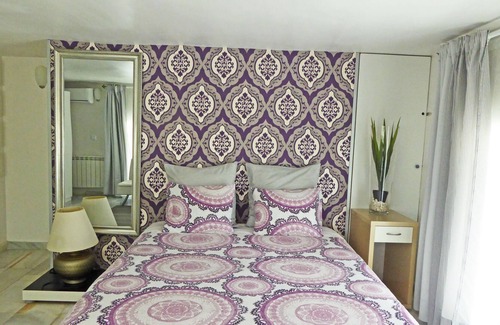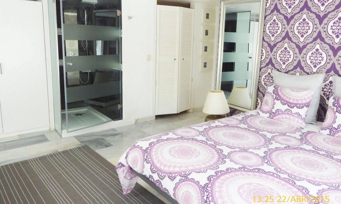 Charming studio apartment totally atypical, duplex style (divided into two levels) with independent access from the sidewalk. Available for nights, weeks or long-term capacity for 3 people. On the top floor in violet and lilac colors, it has a suite-style room, a full bedroom with a hydro-massage shower "alfresco" and a separate toilet, the shower is open on the floor, a hairdryer, towels and sheets available on site 150x 190cm, Flat TV, sofa bed for an extra guest and wardrobe, very bright with large windows overlooking the urbanization park. Ground floor access from the sidewalk: has the kitchen - dining room, newly renovated and with appliances: ceramic hob, large fridge, microwave oven, coffee maker, toaster, washing machine, dryer, white countertop and white high gloss coated furniture, delivered with ikea tableware, pots and utensils