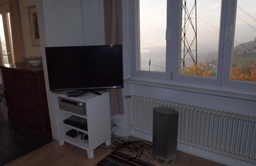 The villa "Gais Alpins" is located in an unobstructed position in Glion (Montreux) with unobstructed views of the Lac Léman, the Savoy Alps, facing south-west (Geneva). The view extends in clear weather to Nyon on the vineyards of the Lavaux (World Heritage) to the southern Jura. Habitable surface 150 m2, without outside terraces, 1 bedroom, 2 single beds, salon with convertible divan (double bed) and, dining room, living room, two wet areas with WC, cellar and work space (washing / heating / handicrafts).