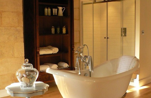 Nestled between Saint-Emilion and Pomerol, Bastide St Pierre lies in a part of the world as much famed for its beauty, tranquility and verve as for its wine, cuisine and rolling vineyards.This elegant house built in 1860 in local French limestone has been lovingly renovated & restored (2014) over the last 2 years keeping both it's original Gironde charm with added modern convenience. The main bedroom has an Emperor size bed with large ensuite bathroom with 3 King size beds in an additional 3 bedrooms & 2 double beds in the fifth bedroom. The interior has a modern 65 sq metre kitchen that should accommodate the most demanding gourmet chef. All the rooms are of grand proportions so there is a wonderful sense of space that retains the elegance & grandeur of the vineyard owners who built the house during the reign of Napoleon III. The area is surrounded by the bustling local markets and antique fairs; to relaxing, with a glass of local premier grand cru in hand, on a local café terrace; to experiencing the history and wonder of the Unesco World heritage sites of Saint Emilion which is just over 10 minutes away driving through the some of the worlds greatest vineyards, the exciting city of Bordeaux just 45 minutes away by car. You are 10 minutes away from the beautiful market town of Libourne where you should visit on one of 3 market days when you will experience the idyllic charm of an authentic French food market. Farther a field you have the Unesco world heritage town of Cognac (1 hour 15 minute drive) & towards the coast you have the fascinating town of the Archachon & the famed Dune de Pyla (again 1 hour 15 minute drive). You are 10 minutes drive from some of the worlds most famous Chateaus such as Chateau Petrus & Cheval Blanc. For wine lovers who wish to travel farther a field the Haut Medoc and Sauterne regions are both within a reasonably short drive. In addition you border the Dordogne & are 45 minutes from Perigeaux & Bergerac with Sarlat de la Canada being 1 hour 15 minutes away. If you love relaxing, the best food & wine there are a lifetime of choices available. Lastly make sure there's room in your bags to take a few bottles back !