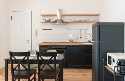 Nice and cozy studio apartment located in the historic center of Vicenza, a stone's throw from the Palladian Basilica and the Cathedral of Santa Maria Annunciata. The apartment has a double bed, two-seater sofa bed, kitchen and bathroom. The kitchen is equipped with oven, induction hob, fridge, dishwasher, microwave and coffee maker. The apartment is also equipped with air conditioning, heating, smart TV and free wi-fi.