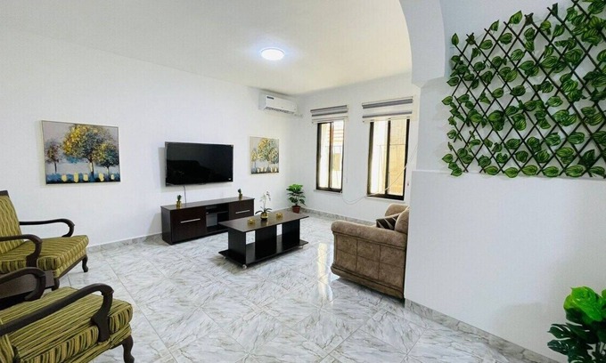 Enjoy a cozy and relaxing stay at this newly renovated apartment. It has brand new AC units in every room to keep you cool and comfortable. You can watch your favorite shows on the 55-inch TV or browse the internet with the high-speed wifi. The location is ideal for shopping, dining, and entertainment, as it is close to Sameh Mall and other popular spots. You can also easily access the Applied Science University if you need to. the perfect place to have a great time with your family & Friends