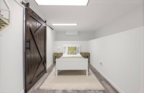 Venture downstairs to find a fully finished basement, thoughtfully transformed into a children’s playroom and equipped with 3 extra beds for a comfortable night’s sleep, plus a convenient laundry area.