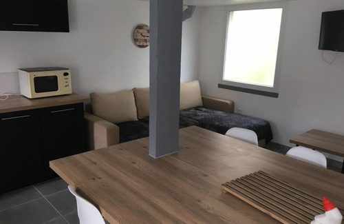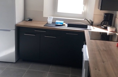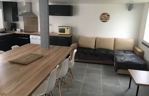 8 travelers, 4 Bedrooms with 4 beds (3 Queen size and 1 pull-out bed) 2 bathrooms. A living room, living room, kitchen of 30 m2 with a refined and modern decoration as well as an outdoor terrace with garden table overlooking the courtyard and the fully fenced garden.