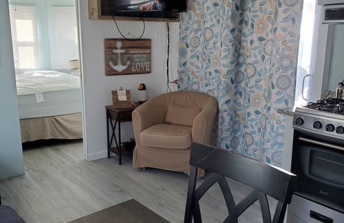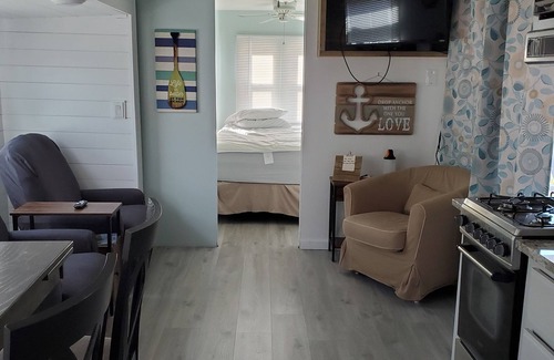 This cottage has a full kitchen and bath, located right on the water. Relax on the very large, covered deck. It is the widest in the resort, so good in all kinds of weather. Sit back, read a book and enjoy your vacation. The ocean is only a block away.