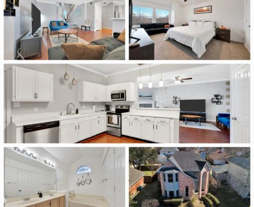 Featuring a garden, Frisco Retreat by The Star & Toyota Stadium! provides accommodations in Frisco. This property offers access to a terrace and free private parking. On clear days, guests can head outside to enjoy the villa's outdoor fireplace or simply kick back and relax. With free Wifi, this 3-bedroom villa features a satellite flat-screen TV, a washing machine, and a fully equipped kitchen with a dishwasher and oven. Featuring air conditioning, this unit has a dressing room and a fireplace. For added privacy, the accommodation has a private entrance and soundproofing. There is an on-site bar. Historic Downtown Plano is 14 miles from the villa, while Preston Center is 22 miles from the property. Dallas Love Field Airport is 25 miles away.