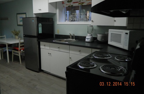 The suite is self-contained on one full level of our home and includes a comfortable queen bedroom, new bathroom with all toiletries provided, kitchen/dining room equipped with all cooking supplies to meet your cooking needs plus coffee pot and coffee a large living/TV room with cable TV and WIFI.