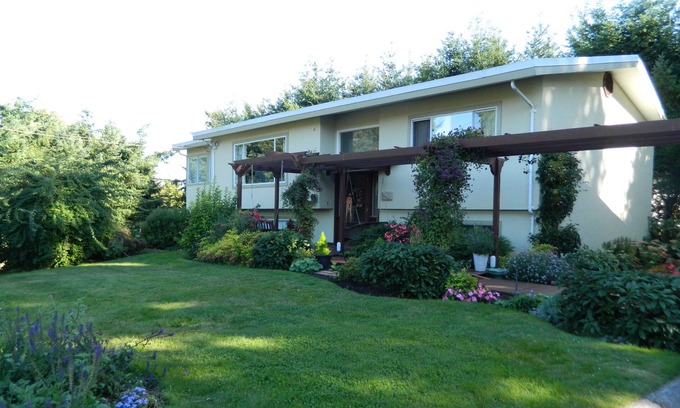 Our home is just outside Victoria, conveniently located between Victoria and Sidney, and close to the Victoria International Airport, BC Ferries at Swartz Bay and Washington State Ferries to Anacortes, Washington. We are on a peninsula which is semi-rural, in the midst of farmland, small villages, beaches and mountains. We are surrounded by lush flower gardens and hummingbirds almost year round. Fresh fruit and produce are plentiful from many gardens.