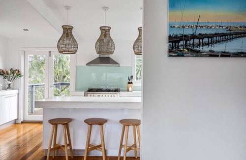 The Front Beach House is located in a quiet cul-de-sac off the hustle and bustle of Point Nepean Road, in a prime Blairgowrie position, only a few minutes walk to the front beach and 3 minutes to the charming village with cafes, shops and boutiques to enjoy.