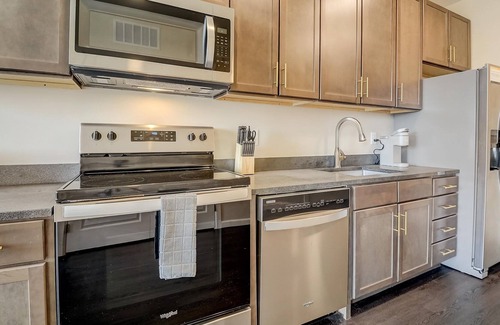 This apartment has everything you & your guests need to enjoy your stay in Louisville! In the kitchen, you'll find beautiful appliances, a Keurig coffee maker, and basic cookware to cook simple meals for a cozy night in! There's free WiFi!