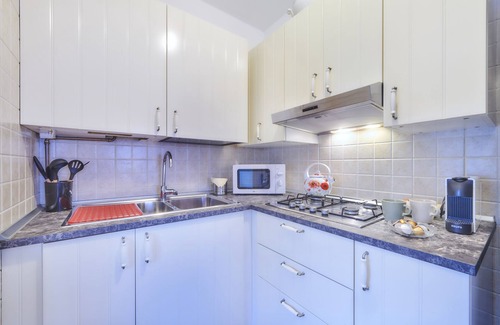 Prepare a home-cooked meal in the kitchen, complete with an oven, a stovetop, and a refrigerator, as well as a coffee maker, an electric kettle, and a microwave. Bathroom amenities include a hair dryer, a bidet, and towels. And there's a washing machine, so you can even pack a bit lighter. Other amenities include bed sheets, a desk, an ironing board, and heating.