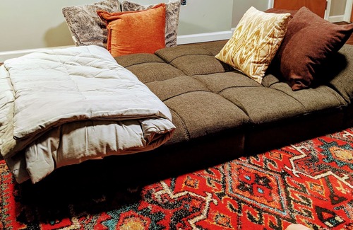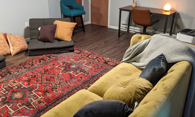 Private entry, queen sized bed, full bathroom, full kitchen, off street parking, EXTREMELY SAFE and QUIET neighborhood! Sleeper futon and couch offer sleeping space for the kiddos, and we are PET FRIENDLY (prior approval required, please no puppies.)