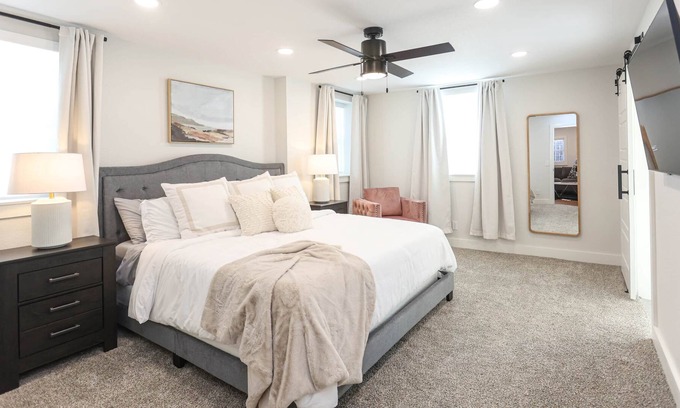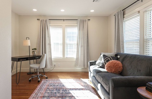 Relax with the whole family at this peaceful home with 4 bedrooms and 2.5 baths. Complete with a nursery for families traveling with kids! This beautiful house is located in a quiet midtown neighborhood in Tulsa. Enjoy the mature trees and friendly neighbors. We have a furnished office, a smart TV in the living room and master bedroom, a fully equipped kitchen, and backyard patio with a fire pit. Expo Center, TU, Restaurants <5 min. Gathering Place 15 min. Close to everything in Tulsa.