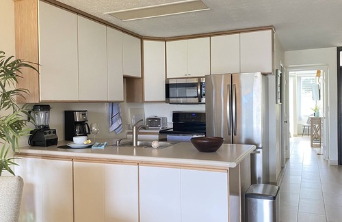 The Master Bedroom is on the second floor with an Ensuite Bathroom. New windows slide open for the Maui trade winds or close for quiet sleeping. Ceramic floor throughout the 1st floor including the Guest Bedroom, and carpet in the Master Bedroom and loft. Both bathrooms have walk-in showers. 55' Smart Samsung TV in the living room. 45' Smart Samsung TV in bedrooms. Bring your Netflix etc. passwords.
