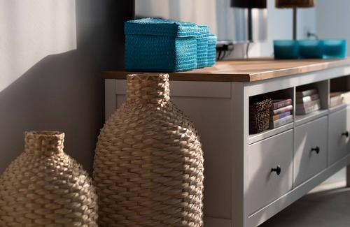 2 private bathrooms and showers in the bedrooms, and an additional shower with bathtub, which also includes washing machine and tumble dryer.