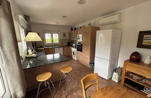 The villa has undergone a complete internal modernisation in recent years including bathrooms, bedrooms, a spacious modern open plan living area with a well equipped kitchen and dining area with a fully fitted kitchen complete with granite worktops, Miele Oven, halogen hob, Bosch dishwasher, large family sized Bosch fridge/freezer and washing machine.