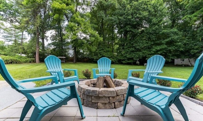 Five spacious levels, including three bedrooms, plus den, three full baths, 2 family/living rooms with large flat screen tvs PLUS rec room featuring pop-a-shot basketball, foosball, an arcade & treadmill. Enjoy the outdoors on the backyard swing, roasting s'mores around the fire pit, or playing a family game of soccer in the huge field.