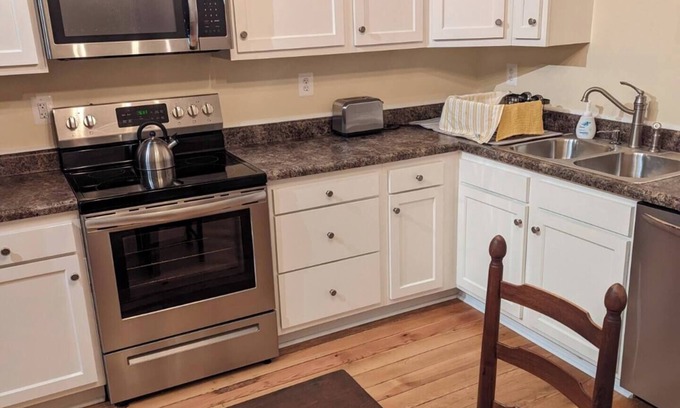 Enjoy a peaceful stay at this delightful 1-bedroom apartment in New Market. The cozy space features a comfortable king bed, heating, WiFi, and a full kitchen. The bathroom includes a shower and hairdryer for your convenience. Relax and unwind in this awesome apartment during your time in New Market. EV Chargers are also onsite for guests.