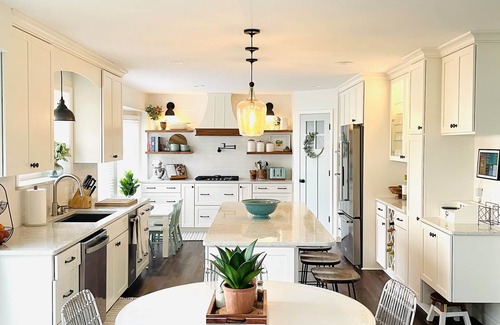 Our kitchen offers tons of amenities including a fully stocked Keurig, double oven, butcher block island and all the kitchen utensils you could need.