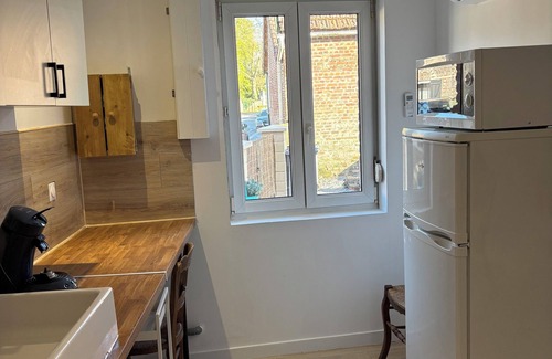 Cuisine équipée avec micro-ondes, air-fryer, plaques de cuisson, lave vaisselle, bouilloire, théière ....nombreux équipements.