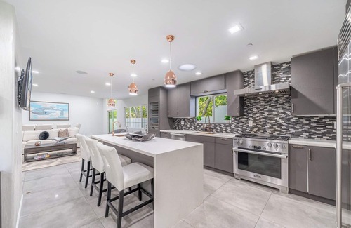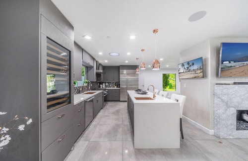 This stylish place to stay is perfect for group trips. Stunning newly remodeled single-story home in a highly desirable neighborhood. The open concept living room and kitchen with state-of-the-art appliances are perfect for entertaining guests. The home has 7 bedrooms with ensuite bathrooms (7 bathrooms total).
