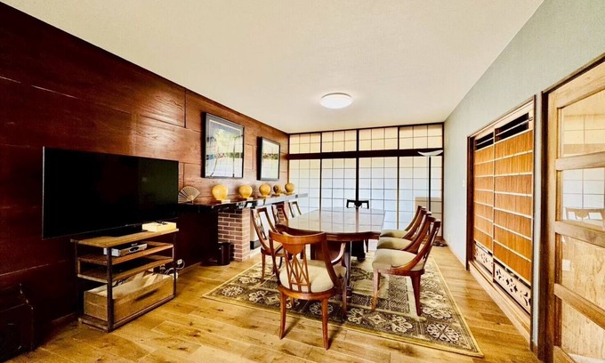 Located in Shirahama, this 4-bedroom, 1-bathroom vacation home lets you experience it all. Fans of nature and the outdoors will love being 6 minutes by car from Shirahama Beach and 4 minutes from Yoshino-Kumano National Park. Enjoy a short 5-minute walk to Shirahama Onsen or easily tackle the quick 6-minute drive to Adventure World.