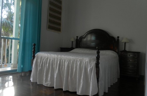 This spacious house is 45 years old. Located in a quiet neighborhood, away from tourist resorts, 110 meters above sea level. It's a 15 minute walk to the center of Funchal and a 17 minute drive from the airport. A perfect location from which to explore the island as it's very central to go either east or west, as well as north. The city is a monument in itself. There are many things you can see and do in Funchal, like visiting the market, the Madeira wine museum, taking a boat trip to watch dolphins and whales, taking a cable car to the gardens of Monte, going on levada walks, etc. From the front side of the house you have views over the mountains and from the backside views over the ocean and the center of Funchal. This property is shared. You will have one spacious bedroom with a double bed and an ensuite bathroom, and a balcony for yourself. The kitchen and the back yard are shared spaces. Free Wi-Fi internet available. There is a washing machine and laundry lines. All the windows in this house have mosquito screens.