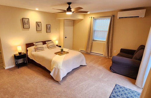 Newly renovated 1BR/1BA apartment located in Alexandria. It offers a great central location, combined with the safety and tranquility of a quiet neighborhood. It has a nice outdoor space with a private patio and private entrance. Washer/dryer in unit, kitchenette with full sized refrigerator, cozy couch with TV, plush queen bed, ample storage, free and plentiful street parking and easy keyless entry.