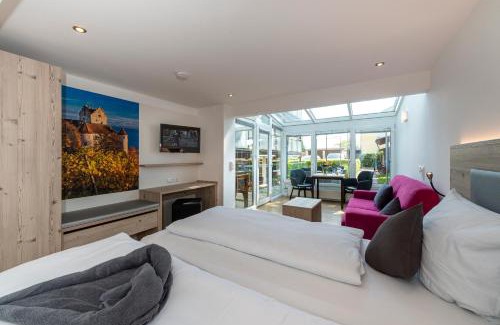 Just 656 feet from Lake Constance, this modern guest house features a spa including sauna, an infrared cabin, a spa shower and a relaxation area. Rental bicycles are available, and the pretty garden is equipped with sun loungers and a sand pit. Decorated in blue and white, the bright rooms at Gästehaus Holzer are equipped with satellite TV and a seating area. There is free WiFi and some rooms also have a private balcony. Guests can also enjoy massage services as well as cosmetic treatments for a fee. The daily breakfast buffet is prepared using products from the region, and packed lunches can be prepared on request. The Swiss border is a 10-minute drive from Gästehaus Holzer, and the A81 motorway can be reached in 20 minutes.