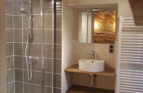 A l'étage, vous disposerez d'un coin salon (avec clic clac) un grand dortoir pour 5 personnes, une salle de bain avec douche et baignoire et d'un toilette indépendant.